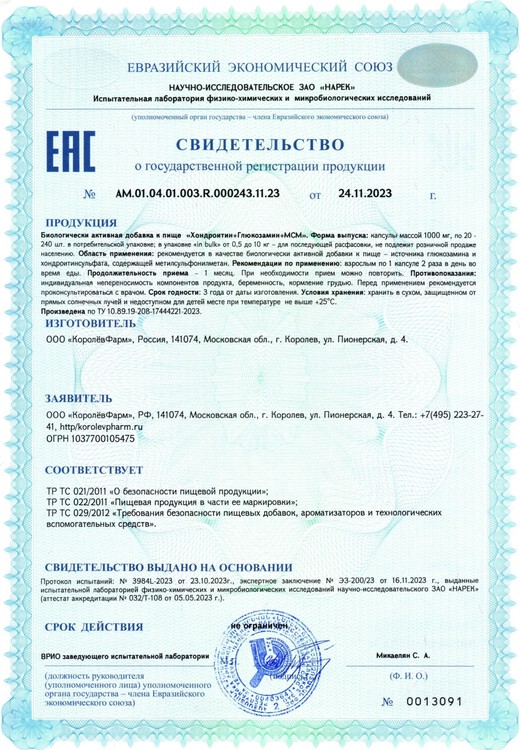 Высокое содержание метилсульфонилметана (МСМ) - 300 мг.