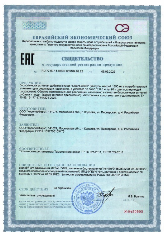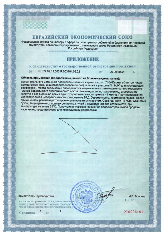 Двойная концентрация – 600 мг ПНЖК в 1 капсуле, 60 капсул на 2 месяца.